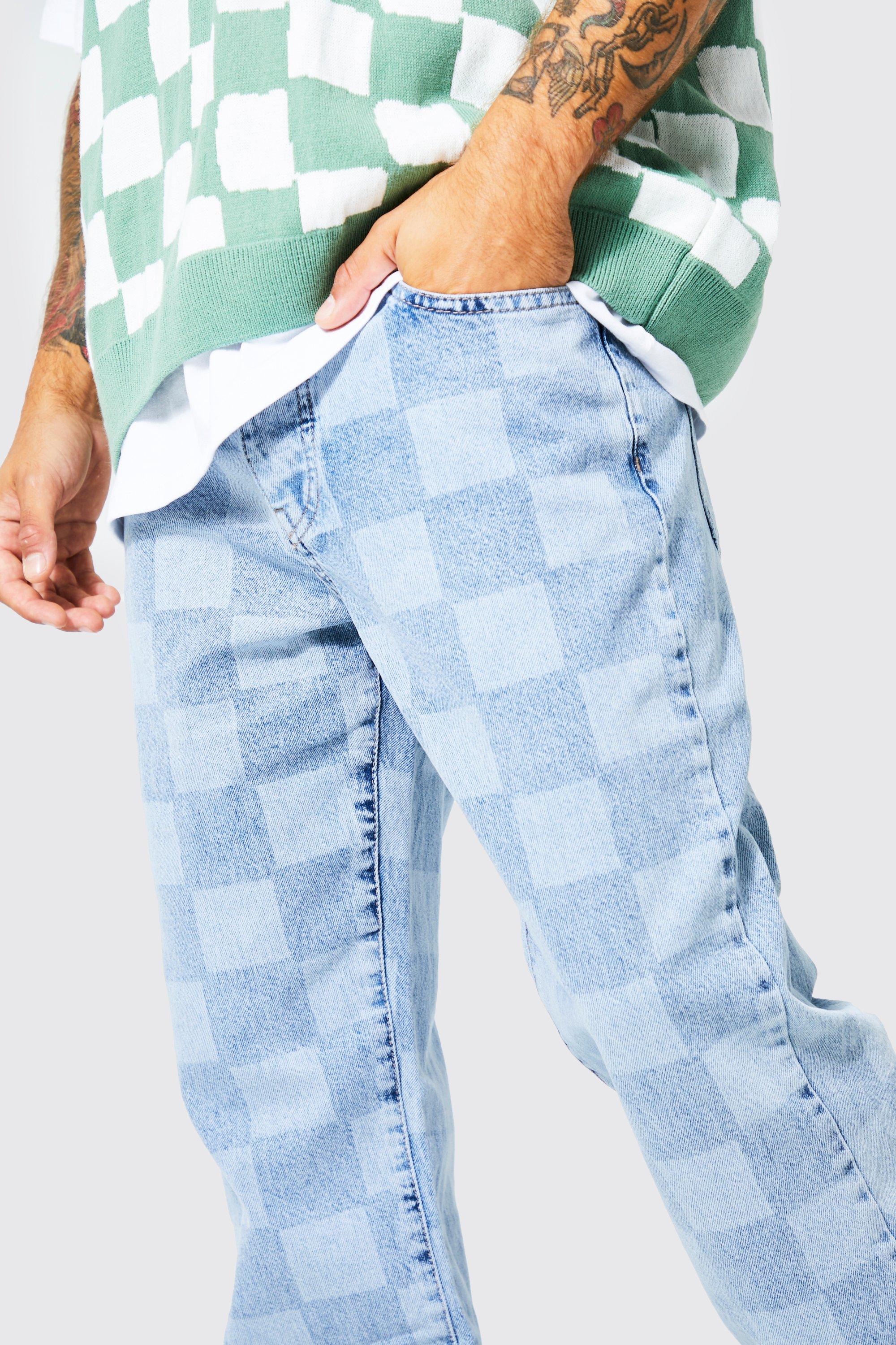 Product Name: Checkered denim jeans shop