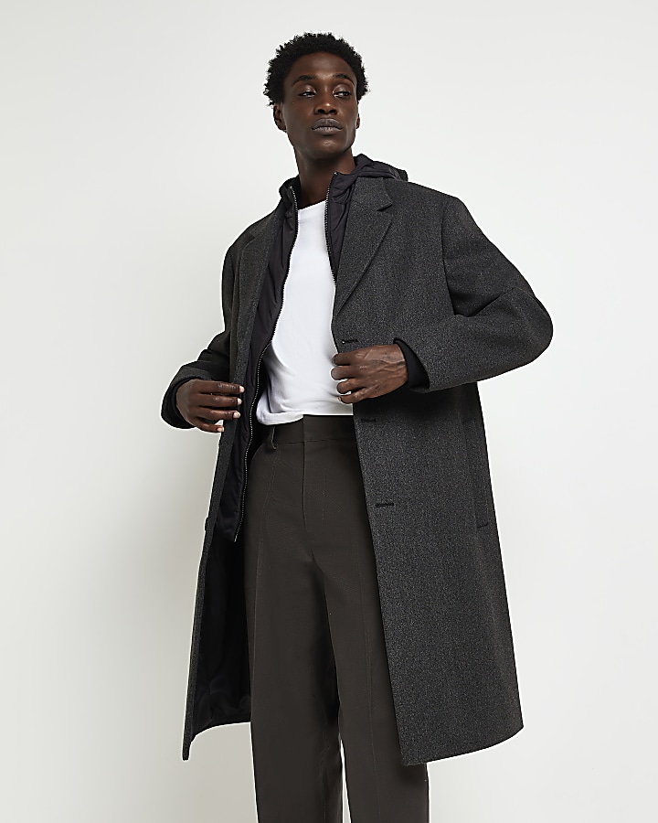 Product Name: Men's grey wool coat uk shop