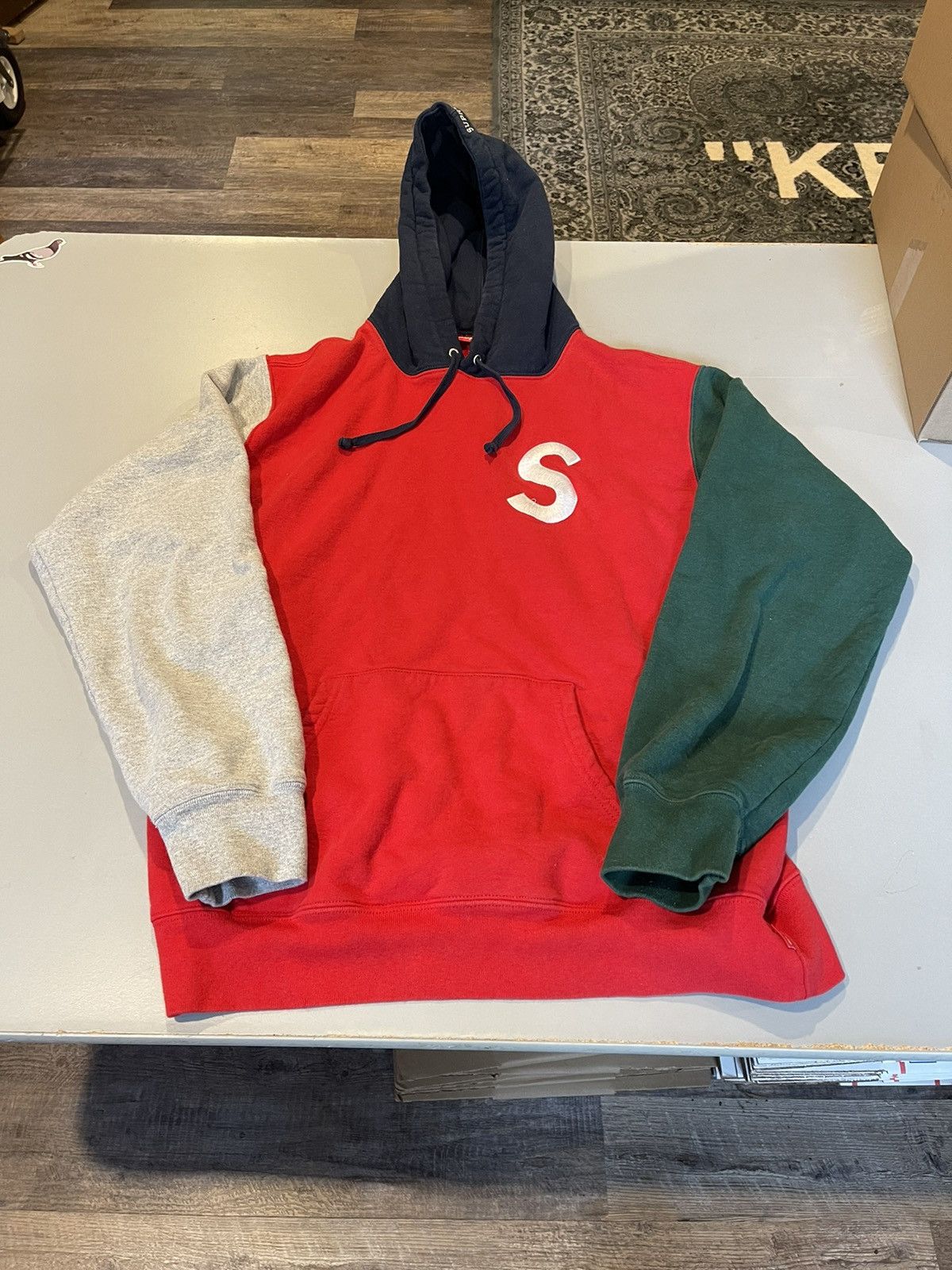 Product Name: Supreme s logo colorblocked hooded sweatshirt red shop