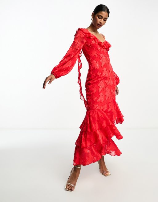 Product Name: Asos design wrap maxi dress with frills in red floral print shop