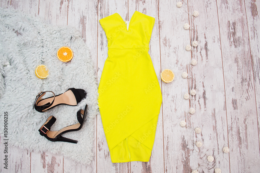 Product Name: Yellow dress and black shoes shop