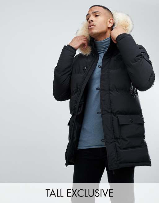 Product Name: Siksilk parka jacket with faux fur hood in black shop