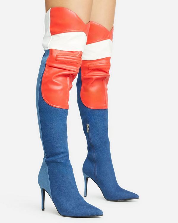 Product Name: Blue thigh high boots shop